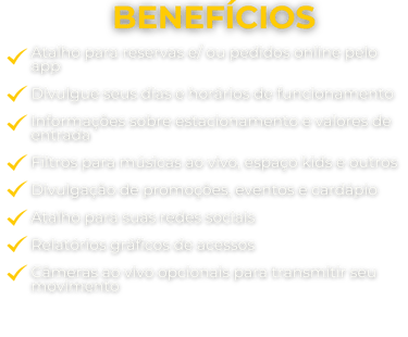 Pesquise por favoritos, música ao vivo, espaço kids, os mais acessados e os mais próximos a você, além de informações sobre cardápios e estacionamento.